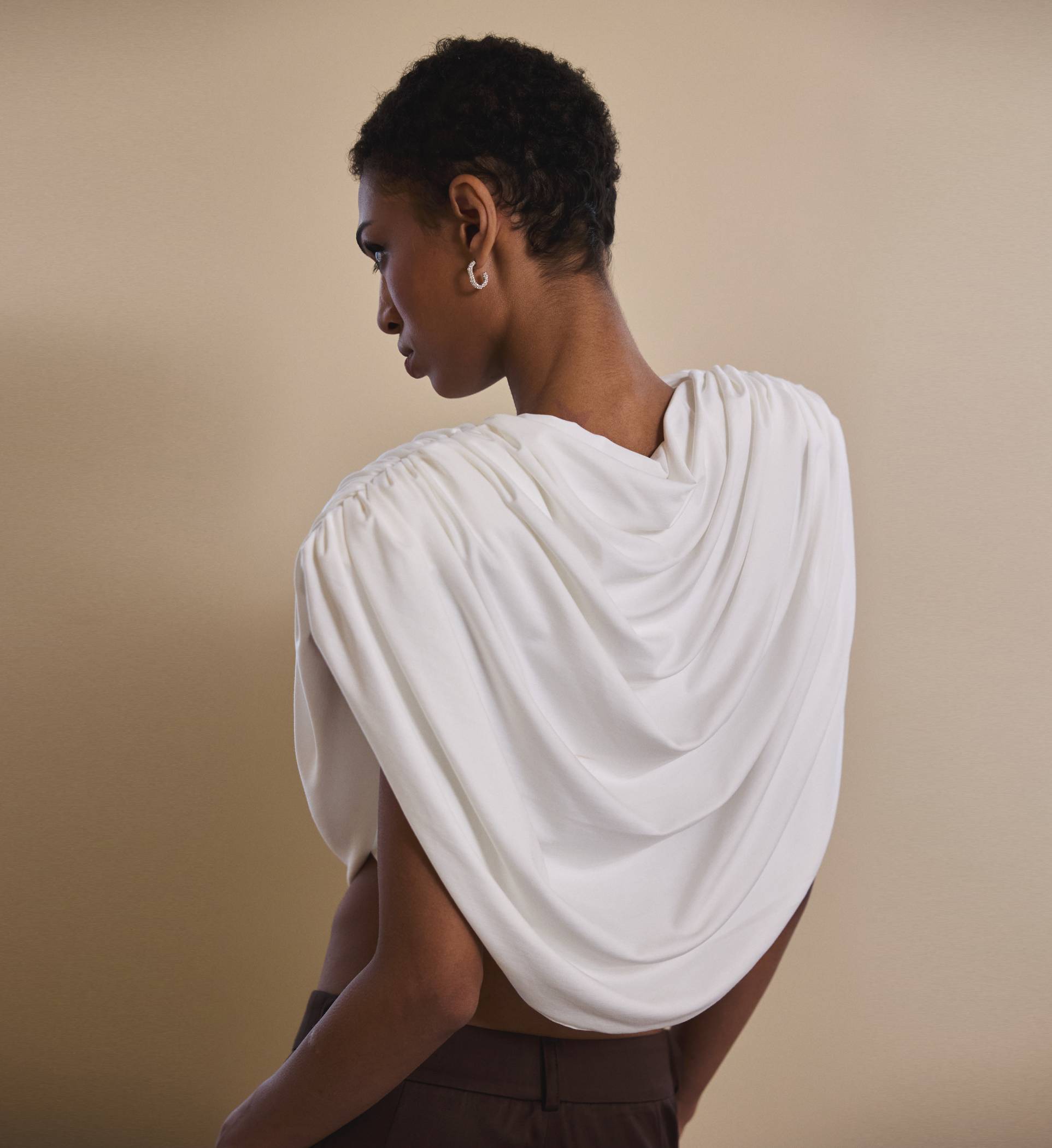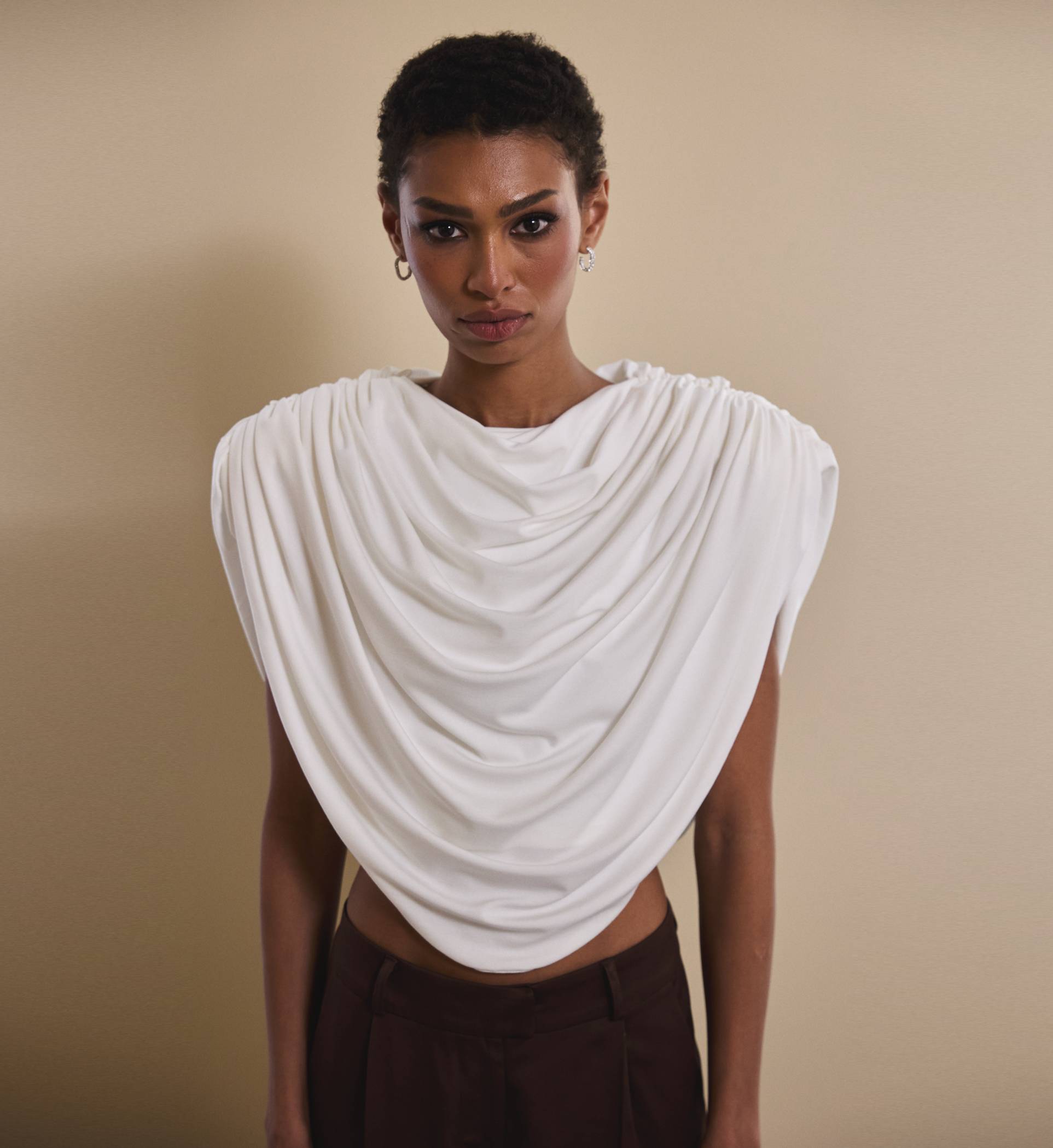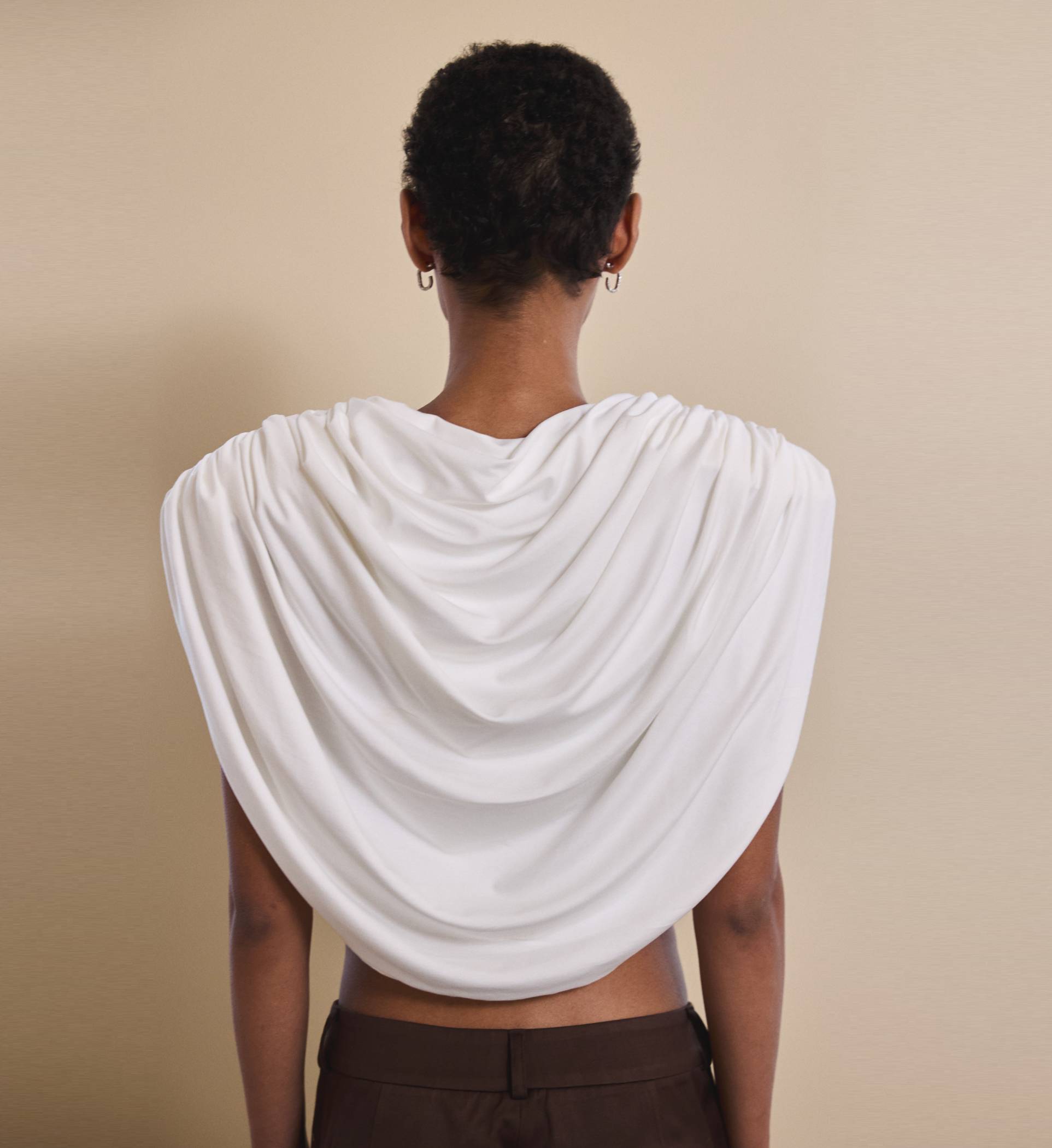 Топ-пелерина из трикотажной вискозы в молочном цвете.
