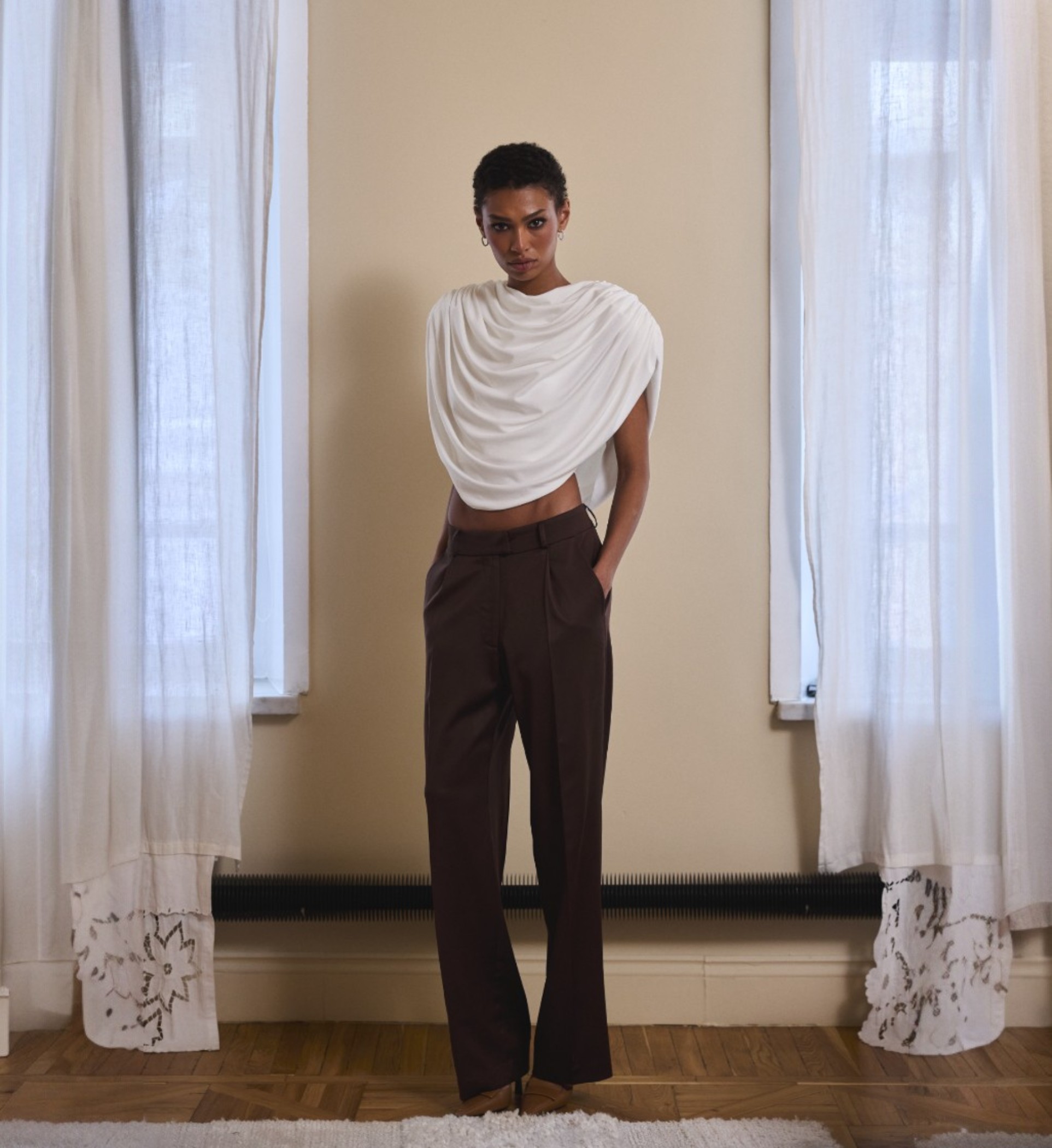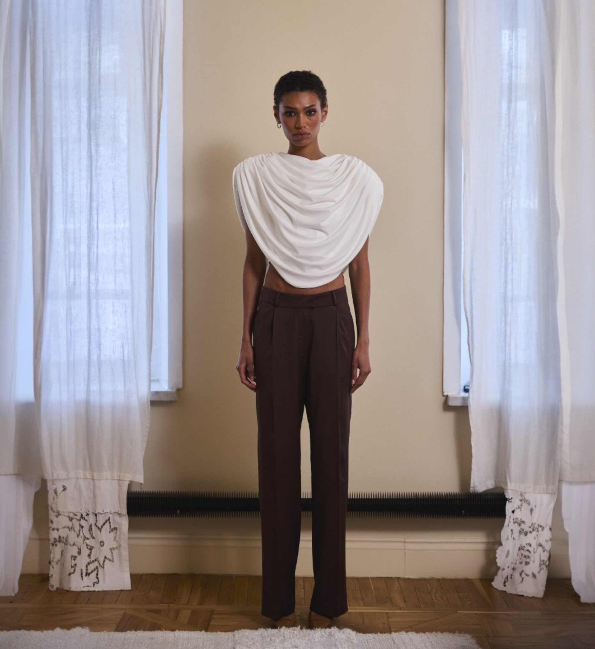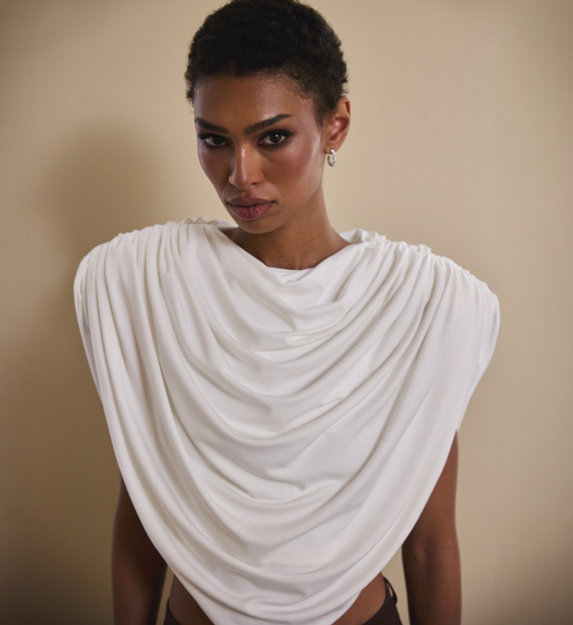 Топ-пелерина из трикотажной вискозы в молочном цвете.