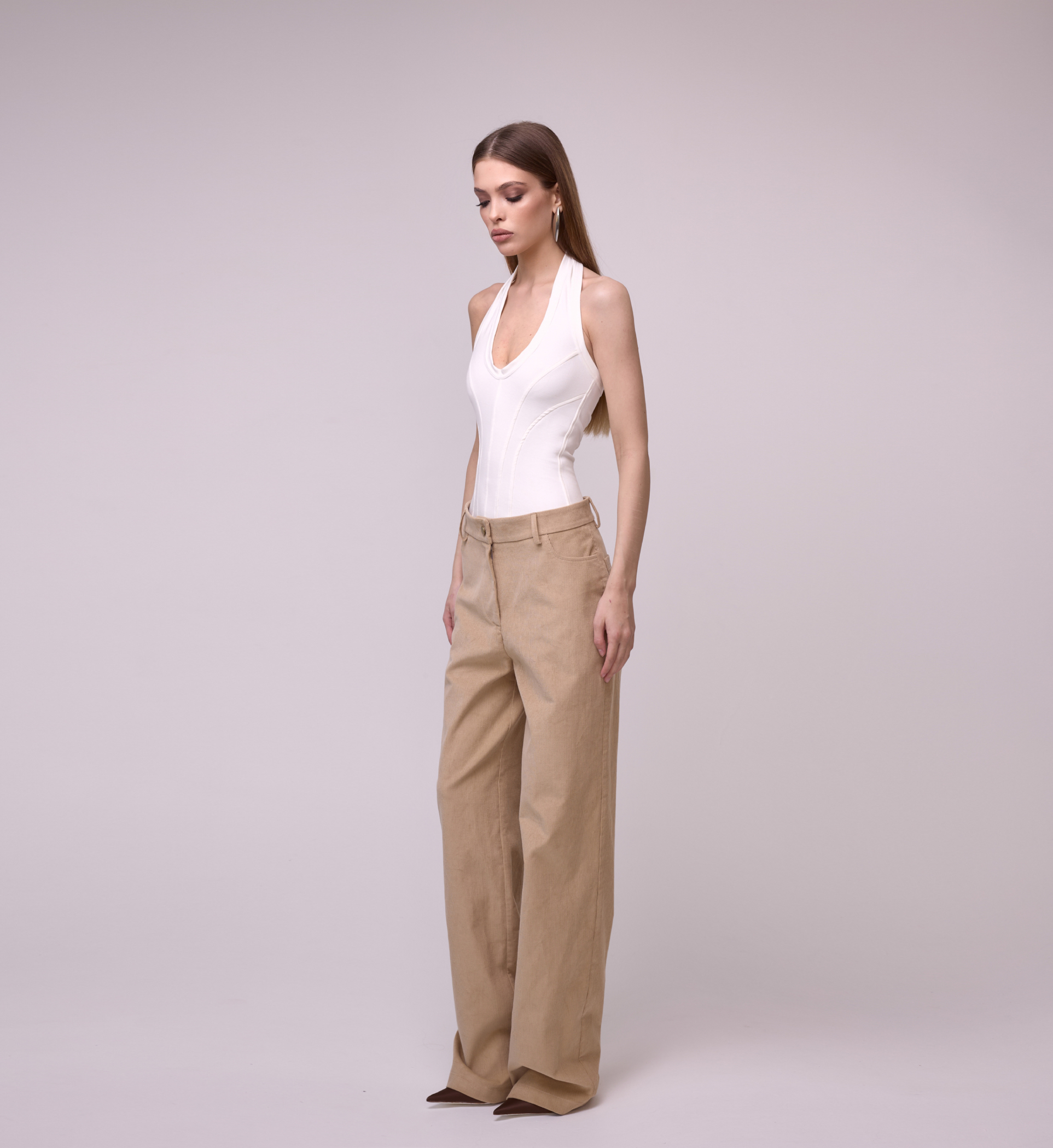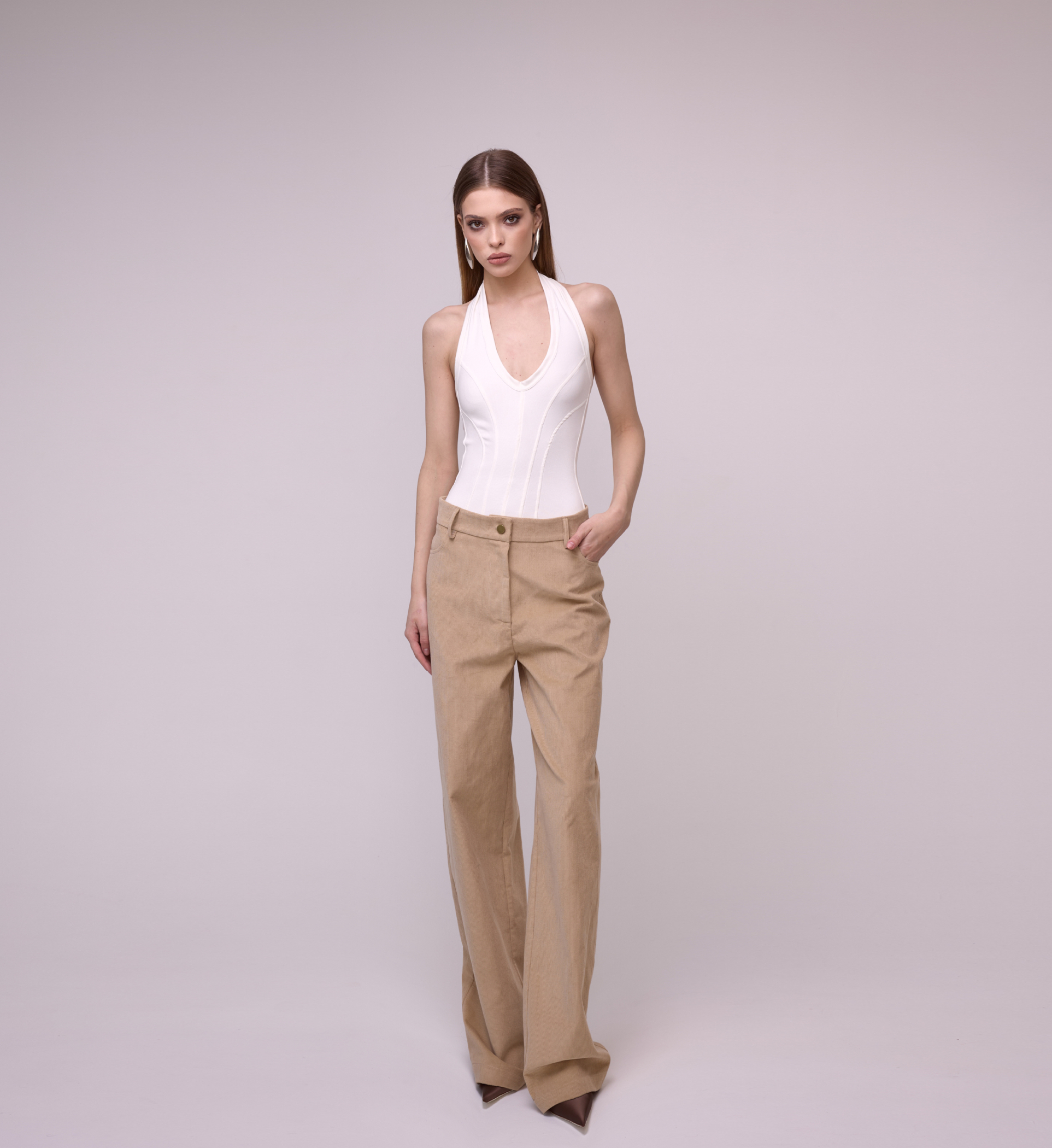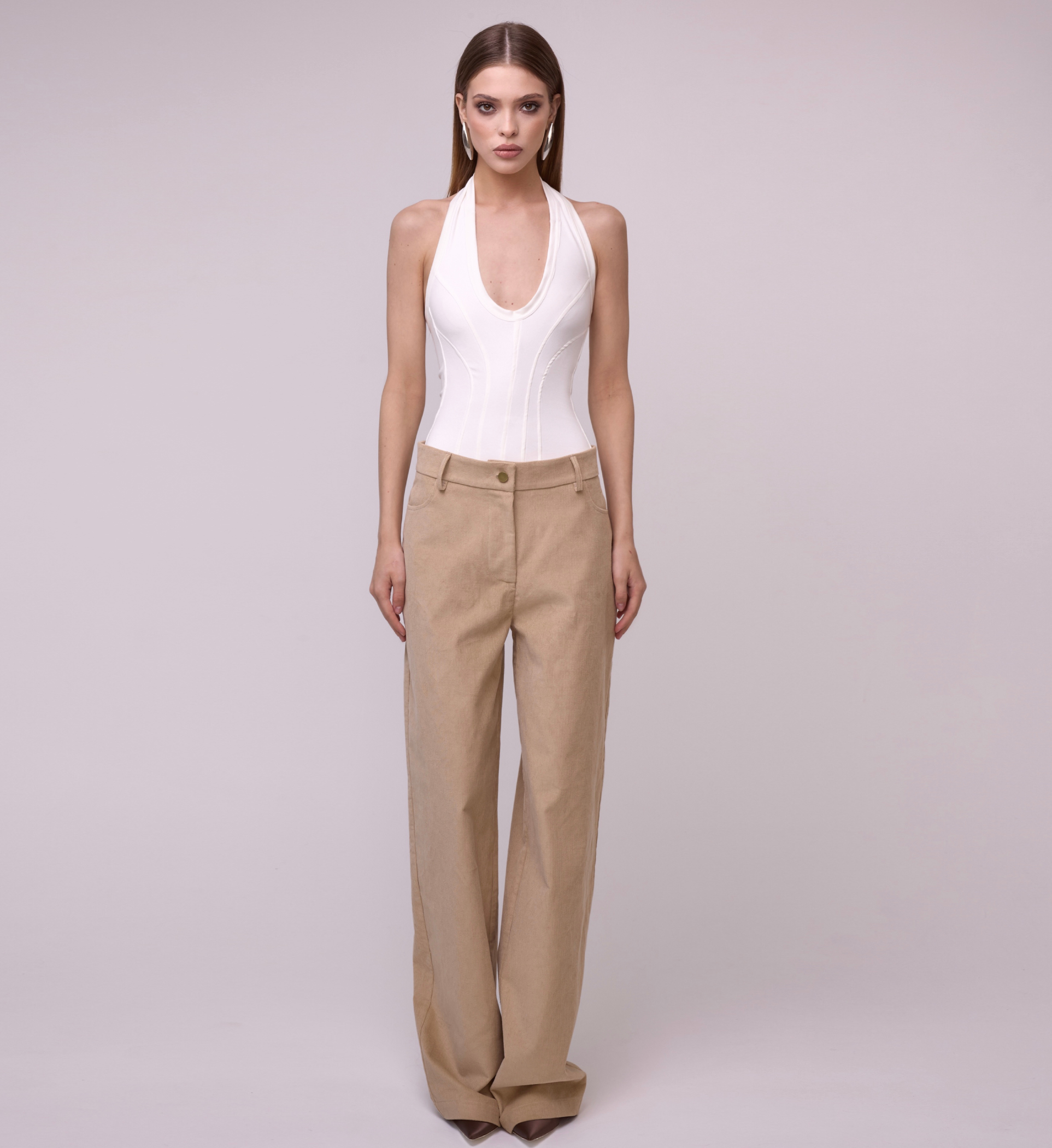 Широкие джинсы с заниженной талией из хлопкового вельвета в песочно-бежевом цвете.