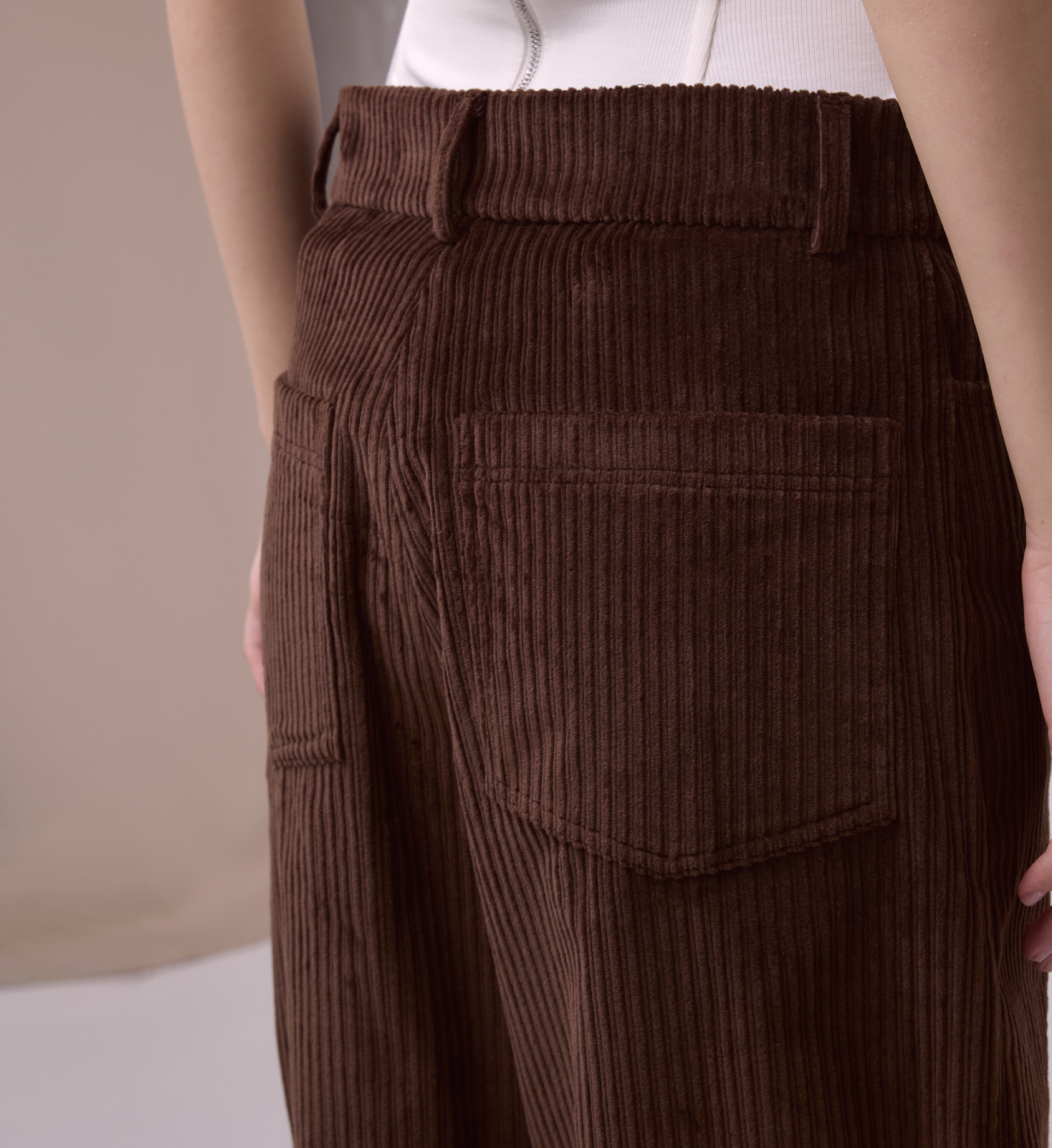 Широкие джинсы с заниженной талией из хлопкового вельвета в глубоком шоколадном цвете.